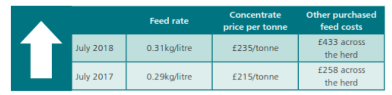 “Analysis of the latest National Milkminder matched sample, indicates that the additional cost of producing each litre of milk in July 2018 has increased by 1.24ppl in purchased feed alone, compared to the same month twelve months previously,” says Nigel.